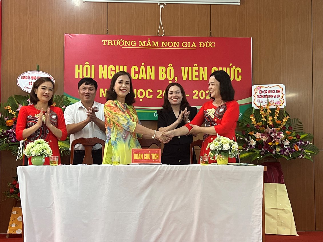 Sáng ngày 30/09/2022, trường mầm non Gia Đức tổ chức Hội nghị cán bộ, viên chức Năm học 2022-2023. Hội nghị diễn ra và thành công tốt đẹp với tinh thần dân chủ, cởi mở, thẳng thắn, công khai, thể hiện ý thức trách nhiệm của mỗi Cán bộ, viên chức, người lao động tại nhà trường.