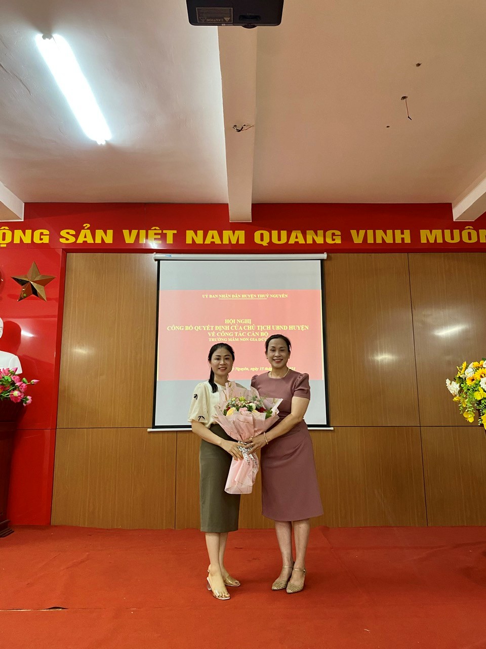 Đồng chí: Đào Thị Mẫn, Phó hiệu trưởng - Phó bí thư chi bộ trường mầm non Gia Minh theo quyết định đã được điều động về giữ chức vụ phó hiệu trưởng tại trường mầm non Gia Đức.