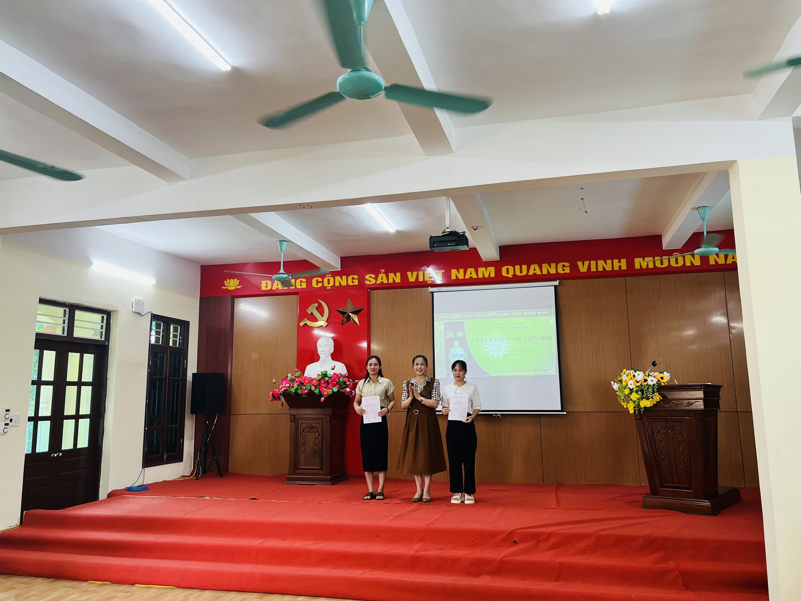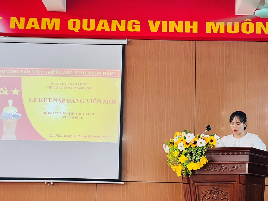 Ngày 24/08/2023, Chi bộ mầm non Gia Đức tổ chức lễ kết nạp Đảng viên mới cho đồng chí: Vũ Thị Bích và đồng chí: Vũ Thị Thuỳ Linh diễn ra thành công rực rỡ. Xin chúc mừng hai đồng chí vinh dự được đứng trong hàng ngũ của Đảng.